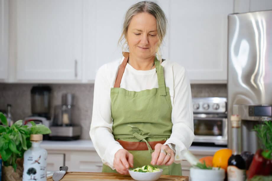 Rice fettuccine with spiced leeks, butternut squash and tarragon.